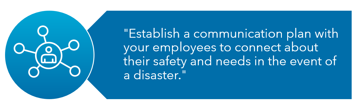 Establish a communication plan with your employees to connect about their safety and needs in the event of a disaster.